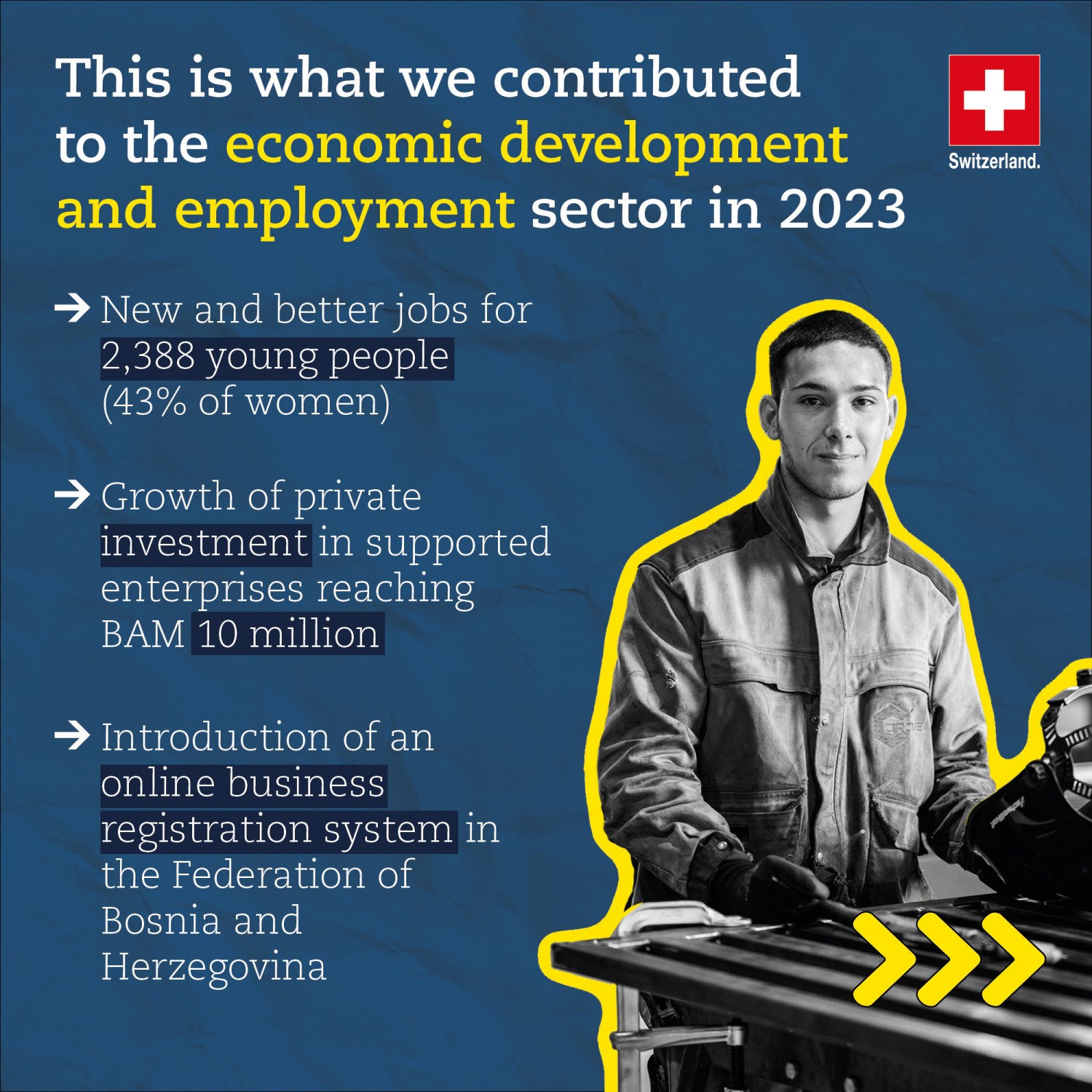 Switzerland has relevant expertise in all three areas and we are confident that we can make an effective contribution to the further development of Bosnia and Herzegovina. We count on the ownership and leadership of our partners to achieve lasting reforms and results.